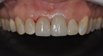 The initial planning of the case consisted of a minor intervention in the gum tissue of tooth 11, and the replacement of two ceramic restorations in the central incisors (11 and 21).