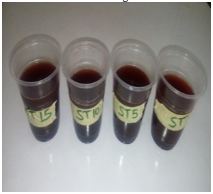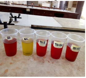 The drink samples without enrichment had a significantly lower score for taste than the enriched samples. The same trend was observed in flavor with the control having a slightly lower score than others. A recent survey showed that the choice of food by the consumer is a complex phenomenon determined by sensory pleasure among several other factors, although taste is considered to be the fundamental determinant of food choice,37 color is the primary factors that motivates a consumer to try a product in the first place (Fernandez-Vazquez et al., 2013). In addition, flavor- one of the most important determinants of selection or choice of fruit-based food material by consumer.38 Generally, the organoleptic features of the drink samples had similar scores in terms of the overall acceptability of the samples. The drink samples with 15% moringa had higher overall acceptability score and statistically different among other samples. It is worth nothing that both the control and the enriched samples were generally accepted, since all the scores were higher than 4.5 which is the minimum acceptable values on the nine- point hedonic scale (Plates 1-3).
