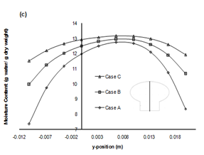 To study the variation of moisture within the mushroom along the radial as well as the axial direction, Moisture profiles were plotted for all the three cases (case A, case B and case C) with 3 different time steps.