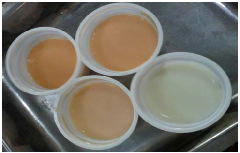 The carrot juice was incorporated into yogurt at 5, 10 and 15% level in a different cup except for control. Juice was added before incubation with culture as suggested by Gandhi et al.14 and Singh.15 Heated milk was cooled to 40°C and inoculated with the desirable proportion of culture (2%) which was collected from Dairy farm, BAU. The plastic cups were pre-washed with boiled water before use. The samples were incubated at 37°C until the complete coagulation of Dahi samples. After complete coagulation (8-12hrs) the Dahi samples were stored at about 5°C under refrigeration until use.
