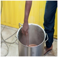 Grinding or pounding: The dried maize has been pounded through a mill. The weight was 6kg of malted maize.