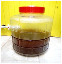 After Four weeks, we had 8°Brix (density:1.035). The beverage was filtered in a tank previously washed with H2O2 solution 1%for 24hours and rinsed with the solution of paracetic acid solution.