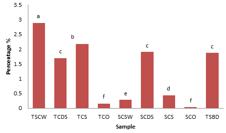 Except otherwise stated, all analyes were performed in triplicate and the data generated were analyzed using one way analysis of variance(ANOVA) using SPSS version 20.0. The means were separated using the Duncan New Multiple Range Test and significance was accepted at p≤0.05.