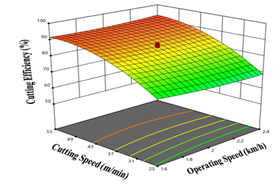 Figure 1 Response surface for effects of cutting speed and operating speed on the cutting efficiency.