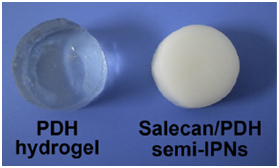 Figure 3 Photograph images of pure polyacrylamide and salecan/PAAm semi-IPN hydrogels.28
