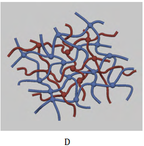 To prepare successfully hydrogels with the desired physical and biological properties, several factors such as a biodegradability, biocompatibility, mechanical strength, sterilizability, water content (degree of swelling), drug loading capacity, and the components of the hydrogels, must be carefully considered.16,17 The preparation methods of hydrogel polymers can be divided into physical and chemical crosslinking. The physically preparation hydrogel is formed by hydrogel bonds, while chemical crosslink method is cross-linked of high molecular chain by chemical bond linking under the conditions of light, heat, radiation and crosslink agents. The formation of gel by chemical crosslinking can be divided into two processes. One process is formed by crosslinking at the same time of polymerization, which prepared usually by the multifunctional monomer through the bulk polymerization or free radical polymerization. Another formation process of chemical crosslinking gel is formed linear polymer at first, and then followed by cross-linking between polymers to form a gel as shown in Table 1. The hydrogel polymers obtained by two polysaccharides can be divided into interpenetrating polymeric networks and semi-interpenetrating polymeric networks. Interpenetrating polymeric network hydrogel is a kind of unique polymer blend, which is made up two cross-linked polymers by continuously interspersed with each other. For semi-interpenetrating polymeric network hydrogels, there is only one kind of cross-linked polymer network, and another is a linear and non cross-linked polymer.18 The crosslinking schematics of macromolecular polysaccharide-based hydrogels are shown in Figure 1.18