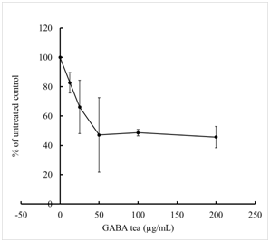HT-29 cells were plated at 10,000 cells per well in 96-well plate. After 18 h of culture, cells were treated with GABA tea extract and stained with MTT after 48 hour treatment. Data were obtained from the averages of three independent experiments.