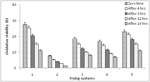 Figure 7 Oxidative stability of blended olive oil during frying. Values are expressed as mean ±SE, P ≥ 0.05.