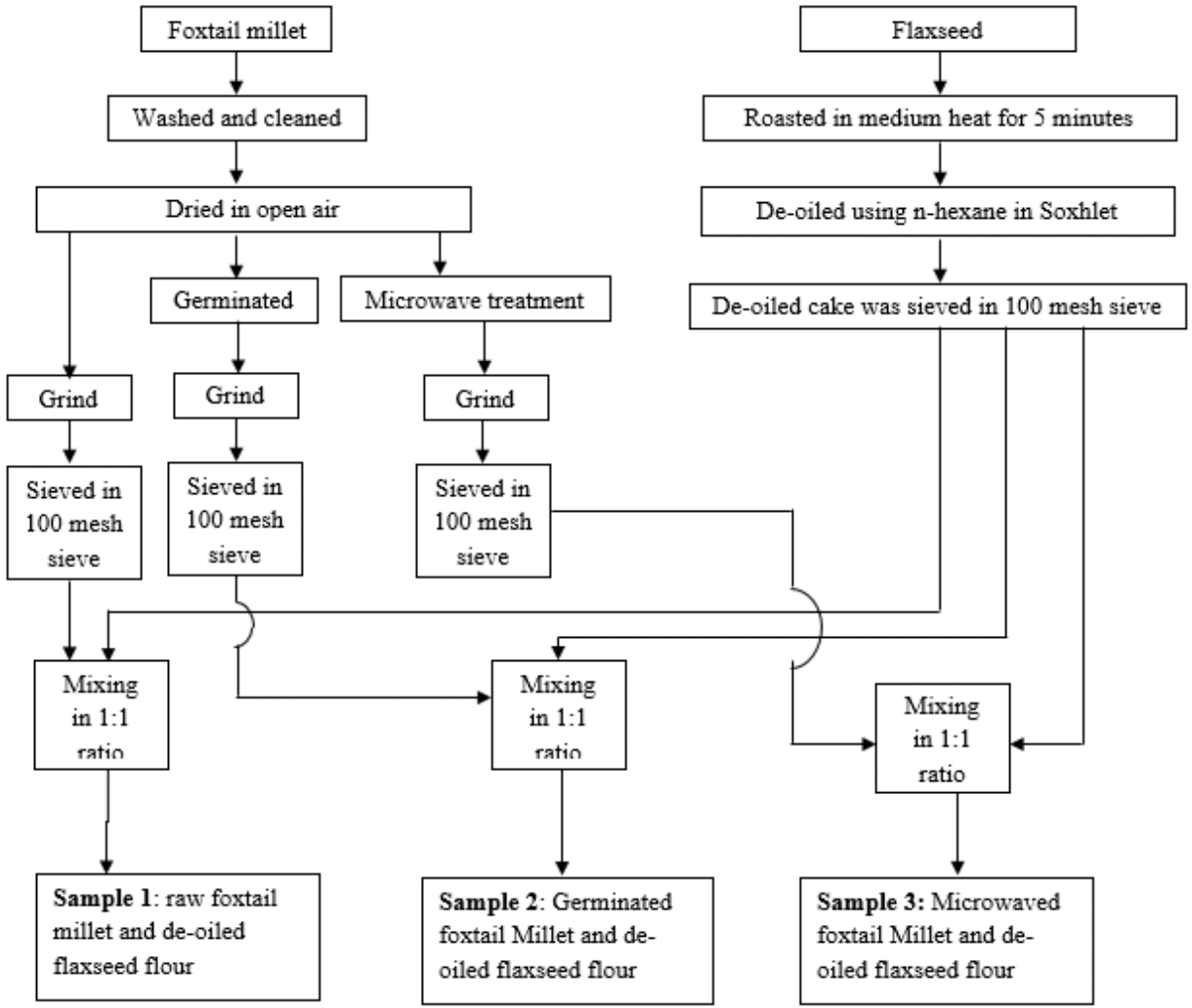 Foxtail millet and flaxseed were collected from the local market of Kolkata in West Bengal, India, and were characterized by the botanical picture of Setaria italica.