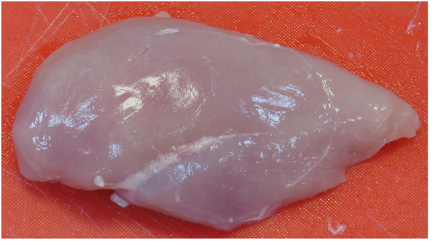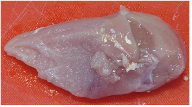 Meat samples were cut from each chicken breast and immediately weighed. Each sample was wrapped in absorbing paper, placed in a clear plastic bag and stored in chilled temperatures (1to5 degrees). The samples were then weighed after 1 day, 4 days and 5 days after storage, in every case the initial weight is used as the reference point. The drip loss was expressed as a percentage of the initial weight.