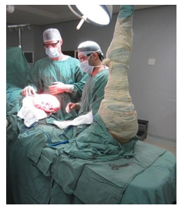 Figure 2 Disarticulated limb, after removal, on a separate sterile table while the team performs closure of the surgical wound.