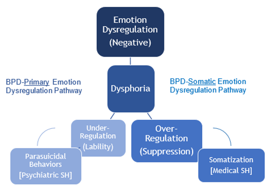 A significant link exists between the use of emotional suppression as a regulatory strategy and both increased somatization and medical comorbidity among individuals with BPD. Furthermore, a somatic variant of BPD appears to explain a subset of patients with voluminous medical records, number of visits to ER and increased use of sleep or pain medication. Because BPD patients with comorbid somatization disorders tend to score higher on measures of alexithymia, prioritizing emotion recognition as a treatment target can help improve pain management and medical treatment effectiveness in patients with S-BPD, a more medically prevalent version of the condition, while also decreasing incidence of medical self-harm.