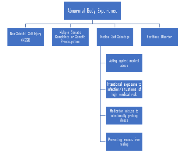 In lieu of NSSH, medical self-harm appears to healthcare professionals as: a) Perceived “sabotage” of medication adherence and medical advice which prolongs illness course; b) Interfering with healing wounds to elicit or extend caring behaviors from the environment; c) Hostile or aggressive behaviors in the healthcare setting as related to under-regulated stress, dysphoric mood, or in response to stigmatizing attitudes from healthcare personnel. Taken together, these results highlight the insidious burden of medical comorbidity and physical health symptoms on mental health outcomes in individuals diagnosed with BPD and point to a significant need to assess the prevalence of these outcomes in diverse health care settings.