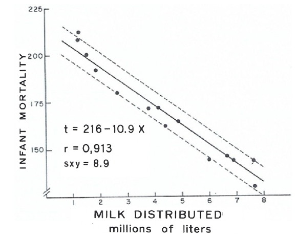 Figure 1 Correlation between the decrease in infant mortality and the distribution of milk by maternal and child health protection institutions.11