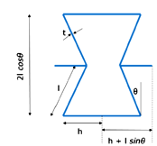 Figure 3 shows the geometry of 2D re-entrant structure as analyzed by Smith et al.12 according to Smith et al.,12 the Poisson’s ratio and Young’s modulus in the direction of loading are given as follows: