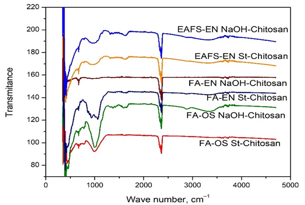 Figure 12 FTIR spectra of fly ash/chitosan systems.