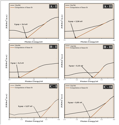 The optical band gap energy (Egap) was calculated by the Kubelka and Munk method, which is based on the transformation of diffuse reflectance measurements to estimate Egap values with good accuracy within the limits of the assumptions.14
