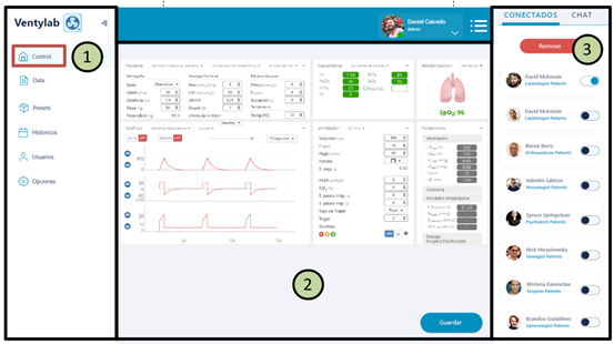 For its part, the students can observe the practices individually through their interface, since each one can log in from their personal computer. Moreover, each student remains in a passive state until the professor allows manipulation permits for the physical equipment (ventilator and patient emulators), at that moment the student interface is enabled and has the option to enter a new configuration for the mechanical ventilator.