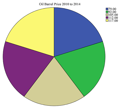 Figure 1 above showed that Harris County Texas between 2010 and 2014. In five years, the (M) was $101 per barrel, while the (Md) was $105, the (Min) was $79 and the (Max) was $117 indicated a symmetrical drop in oil barrel prices in Houston Harris County, Texas and the surrounding areas. Furthermore, the (Std. E) was 97.7, but the (Std. D) was $15.50 which indicated a statistical significant differences decrease from $117 per barrel to $79 per barrel or 33% price drop from 2010 to 2014. The data indicated a symmetric drop instead of a systematic drop in oil barrel prices (Figure 1 above) as shown. At the initial conclusion of this study, we found that Oil Barrel price has dropped from $117 to $58 or approximately 50% drop in price. Once again, this is yet another Symmetrical drop instead of being a systematical drop as required in commodity trades (Figure 1 & Figure 2 above and below for more). (Figure 2) Oil barrel price cumulative percentage color coded and difference on the right-hand side and its impacts on the price of a gallon of gasoline in Houston Harris County, Texas between 2010 and 2014.