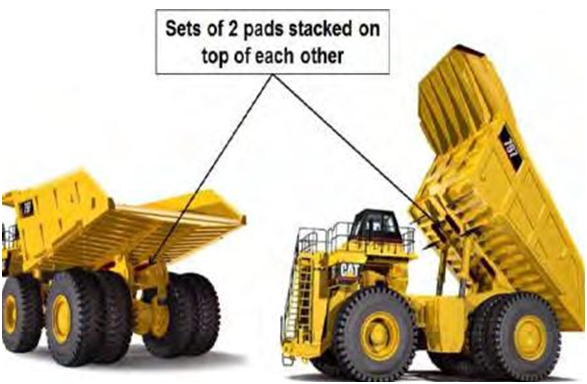 Once ready for loading the bed rests on the steel chassis with highest contact forces towards the opposite location from the pivot point. The deformation analysis results of the longitudinal beams at the bottom of the bed where it rests on the chassis, showed that the tip on these two beams require insulation in order to attenuate the HISLO vibrations. Once identified rubber pads were added in pairs and the dumping process was simulated under HISLO conditions using a set of 2, 4, 6, 8 and 16 pads. Simulation results showed that a set of 16 pads gave the optimum results. The addition of the 16 pads in these areas reduced the RMS seat vertical acceleration by 15.7% to 3.00m/s2.5
