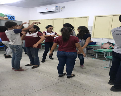 Based on the class proposals, with regard to dances of African origin, such as samba de roda, frevo, capoeira, maculelê and samba Dentro, the research process was initiated with students from Escola Municipal Professor Waldson José Bastos Pinheiro, in 9th year elementary school classes in the final years. Classes were held during school hours, in the afternoon shift and in some moments, at the end of the day, on Tuesdays and Thursdays.