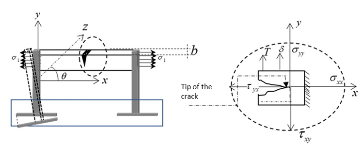 Where T is the tensile stress of the crack contour, a is the depth of the crack, b is the thickness of the element, 2a is the length of the crack, ds is the length of the contour increment, n is the component of the unit normal vector and is the stress in the crack. In fracture mechanics, two methods of cracking are proposed; the energy criterion, which reveals the cracking which occurs when the energy available for crack growth is sufficient to overcome the strength of the material, and the stress intensity, which mentions that cracking occurs when the stress intensity factor is equal to or greater than the toughness of the material strength.30,31