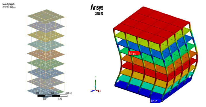 Table 1 shows the displacements due to seismic action, as well as the compressive and tensile stresses to which the structural elements of the building under study are subjected. It is worth mentioning that these tensile and compressive stresses are obtained from the complete simulation of the building.