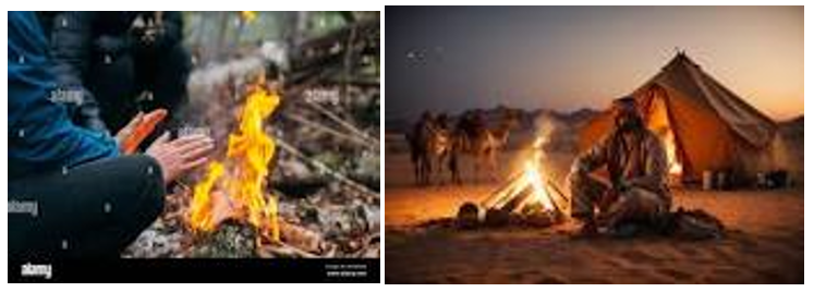 Figure 1 Heating of the human body by exposure to a wood fire: sensation when receiving infrared radiation.