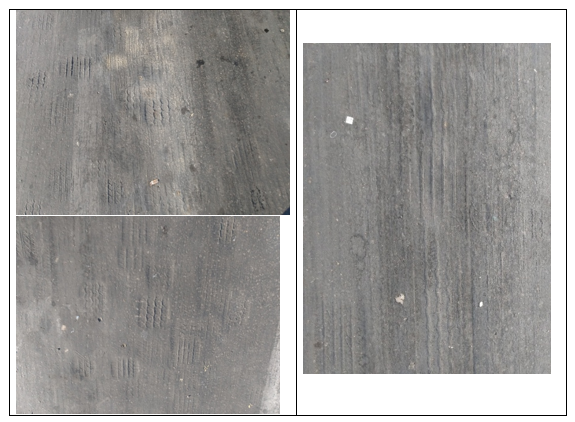 Figure 8 Traces of tire dents on the road surface after vehicles were left static for a few dozen minutes while queuing to take the ferry, Ajim side (photo R. Ben Slama, the ferry, Djerba, Tunisia, July 2023).