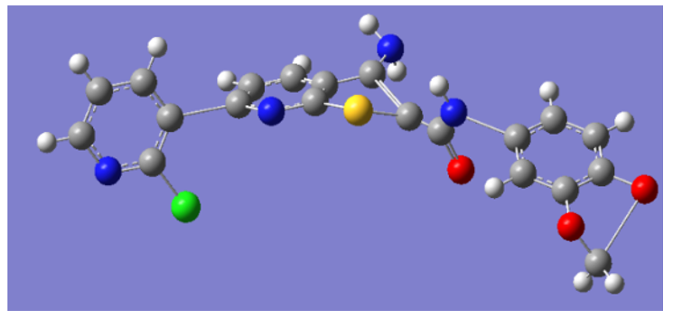 In a bid to understand the correlation between the molecule’s structure and its experimental IC50 value, we modeled the eight small-molecule inhibitors collected at the Molecule selection step, leveraging the Gaussian 09 Quantum Mechanical Software, geometry optimization feature was utilized The LUMO (Lowest unoccupied molecular) energy, HOMO (Highest occupied molecular orbital) energy and total dipole moment, collectively form a unique representation of each molecule’s structure, these key physicochemical properties crucial for inhibitor activity were calculated for each molecule using the Gaussian 09 Quantum Mechanical Software.