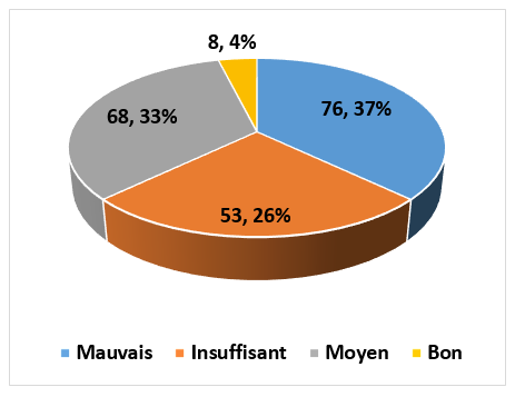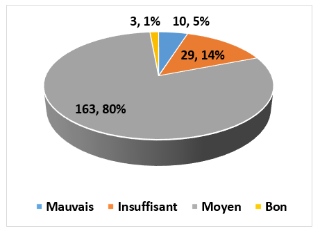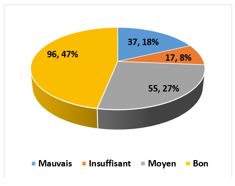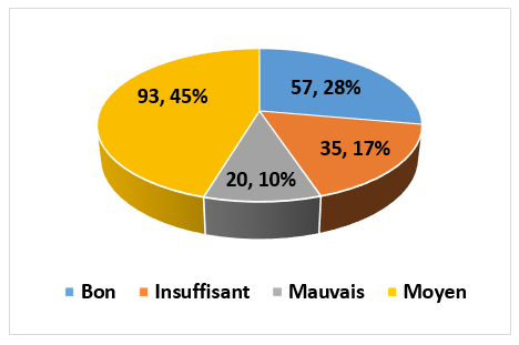 The Table 17 below shows that 53.2% of secondary school students had a "Good" level of knowledge about diaper rash. It is also noted that up to 24.2% of university students had a "Poor" level of knowledge about this dermatosis (Figure 5).