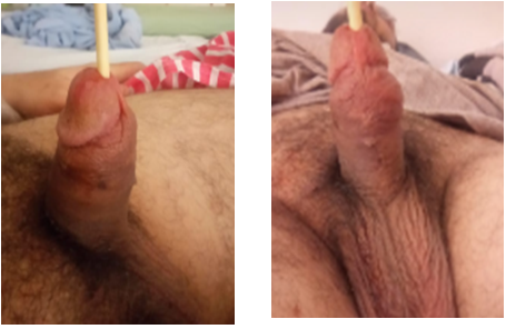 A 38 years old male patient presented to the hospital after hearing popping sound followed by asudden detumescence while having intercourse along with a profuse urethral bleeding, with no swelling or deformity of penis as shown in Figures 1&2. Local penile examination was unremarkable therefore,it was a bit misleading. Urethral catheter was inserted gently and carefully which drained clear urine andurethral injury was suspected. Patient was resuscitated and started on broad spectrum antibiotics as per the hospital`s protocol subsequently the patient had a considerableperiurethral bleeding that raised the suspicion of an additional underlying pathology; beyond the urethral injury. Ascending andmicturatingcystourethrogramin Figure 3 confirmed the presence of a tear in the tunica albuginea extending to the urethral lumen and draining the blood from the corpora cavernosa directly into the urethra, it did also show a normal filling of the anterior urethra with irregular extraurethral extravasation and finally a penile duplex ultrasound scan in Figure 4 confirmed the presence of multiple subtunical and bilateral extracorporeal small organized hematoma. Although the physical findings were not suggestive of a penile fracture, exploration was offered and advised to the patient in the view of the finding but unfortunately the patient refused to undergo exploration after settling of the urethral bleeding and he was fully and formally informed about the possibility of the associated risks mainly erectile dysfunction. The patient was self-discharged and represented 3 month later, with moderate degree of erectile dysfunction and examination revealed a 3 cm fibrotic plaque on ventral aspect of left corporeal body.