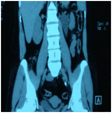 All patients who reported within 1-2 days of ureteric colic were examined, and subjected to Haemogram, KFT, Urine examination, Ultrasound and NCCT Scan (Figure 1&2) to document ureteric calculi at the time of colic with respect to location, side and size of the stone. Age and sex of the patient was noted down and SOADS regime was started for a period of 4 weeks maximum after which this MET was stopped. The routine follow up examination were performed, using the same tools to evaluate the success of the treatment after every week till 4 weeks of study period. Patients were instructed to discontinue the study medication after spontaneous stone expulsion and date of expulsion is to be recorded. For patients without stone in urinary tract on final USG/NCCT but unnoticed stone expulsion, the date of last positive stone status is to be recorded (Figure 3). For the children the dosage of the SOADS regime was half the dosage. Two - three litres of fluid which consists of Lemon juices, Oranges juices and clear water or Tea. This regime was continued for 2 weeks after which again assessment was made and if the stone did not pass then it was continued for another 2 weeks. Treatment was considered successful when stone was expelled within 4 weeks. After 4 weeks, patients who did not pass the stone were advised to undergo minimally invasive surgery depending upon the stone size and location.