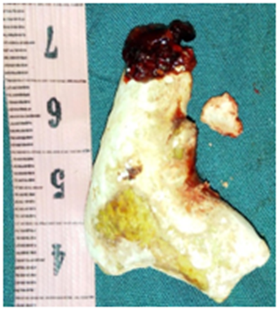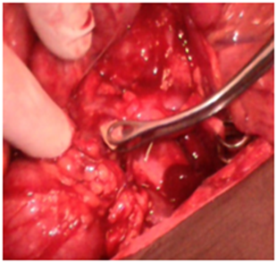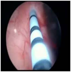 Abdomino-pelvic ultrasound scan revealed an intrauterine viable gestation of 13 weeks with 5 days old as shown in Figure 1A, there was also dilatation of the pelvicalyceal system involving the proximal part of left ureter and presence of 2 calculi within the left renal pelvis, the larger one measured 1.6cm in size as shown in Figure 1B and the right kidney was normal. Serum electrolytes, Urea and Creatinine including urinalysis, urine culture and full blood count were normal. She was then planned and had urethrocystoscopy and Double J stenting of the left ureter under general anaesthesia as shown in Figure 2A. Cystoscopic findings were minimal resistance while stenting the left ureter, which was ultimately, overcame, otherwise normal bladder mucosa and ureteric orifices and no stones within the bladder. Postoperative condition was satisfactory and symptoms subsided. She was later discharged home on oral antibiotics. Since then, she has been regular with her follow up and has been doing well until when she was re-admitted with an assessment of anemia in pregnancy secondary to Malaria and Urinary Tract Infection (UTI) at 32nd week gestation. She responded well to antibiotics and antimalarial, and also had blood transfusion. The serial electrolytes urea and creatinine remained normal. The pregnancy was monitored till term and had spontaneous delivery of normal female neonate weighing 3kg. Patient was re-evaluated in the first week of puerperium, the findings from the repeated abdominal ultrasound scan and KUB were 2 left renal calculi, and one of them has already enlarged to a bigger size of 2.5cm in its widest dimension and presence of intact left ureteric double J stent, otherwise no soft tissue or bony abnormalities seen. She later had left Nephrolithotomy and extraction of double J stent. Intra-operative findings were ‘’stag horn calculus’’ with another small calculus in the left renal pelvis as shown in Figure 2 (B & C). Post-operative condition was satisfactory and was later discharged home. The metabolic evaluation and stone analysis revealed calcium oxalate and calcium phosphate and she was counseled on dietary calcium.