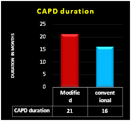 Conclusion: Modified CAPD catheter insertion has lower early and late complication rates and lower incidences of drainage failure and shorter duration of hospital stay.