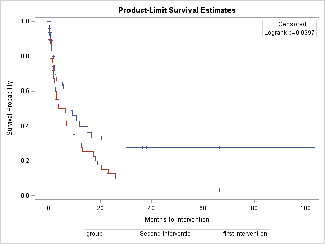 The primary and secondary patency rates were defined as the time between stent deployment and the first intervention and second intervention, respectively. Kaplan-Meier survival analyses were used to calculate the time to first and second interventions.