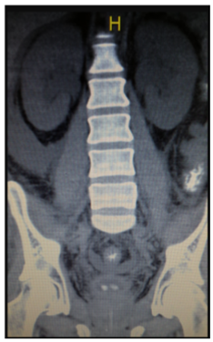 The Renal US revealed a dilated aspect of the kidneys, and bilateral ureteral and pyelocaliceal ectasia, with the presence of bilateral lithiasis in the ureteropelvic junction. CT scan confirmed both bilateral ureteropyelic ectasia (23mm) and lithiasic images (7.5 mm right kidney and 10 mm the left). There was a presence of dense material in both distal ureters. (Figure 1) The clinical picture was interpreted as obstructive AKI secondary to bilateral nephrolithiasis caused by HAART + Ganciclovir. A right double “J” catheter was inserted by cystoscopy; in the left ureter, a discharge of multiple small calculi was observed. Retrograde pyelogram did not show any obstructions at any level. The patient has discontinued Ganciclovir, and the treatment schedule was changed to include antiretroviral therapy without atazanavir. The patient developed post-obstructive polyuria, without hemodynamic or electrolyte abnormalities and he also showed a recovering normal renal function.