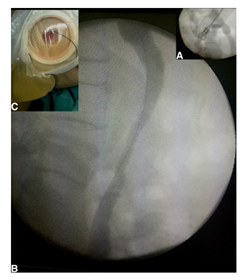 Management of strictures represents a big challenge for urologists and radiologists and both open approaches and endourological techniques were described. Open surgical revision remains the treatment of choice with a success rate of around 80%.3 However, the difficulty due to extensive intra-abdominal adhesions, the significant operative and post-operative morbidity (vascular injury, wound infection).4,5 leads to look for less invasive procedure with shorter hospital stay, especially that the patients are generally old with concomitant morbidity. Alternative options include endoscopic techniques such as balloon dilatation, endoscopic incision, stricture stenting, and endoscopic stricture incision combined with balloon dilatation. The aim of the present article is to describe a mini invasive percutaneous option, feasible under local anaesthesia, in an outpatient basis.