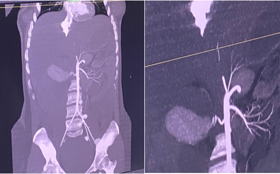 Renal artery aneurysms (RAA) are a rare condition. Their incidence is estimated at around 0.1%, representing around 20% of visceral artery aneurysms. Nevertheless, their frequency is tending to increase as a result of the multiplication and improvement of diagnostic imaging examinations.1