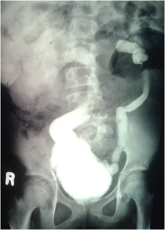 An eleven year old girl was presented to with chronic constipation, persistent dribbling of urine and recurrent urinary tract infections since early childhood. She received treatment by local physicians but remained without proper response. On examination, child was a febrile and her bladder was palpable. Her buttocks were flattened (Figure 1) and external genitalia were wet and excoriated. Anal tone was found decreased on digital rectal examination and the rectum was loaded with hard stool. No definite neurological deficit was found. She was catheterised and stool evacuated with per rectal enema. Her blood analysis showed low haemoglobin (8.1gm %), leucocytosis and raised serum creatinine level (2.2mg %). Urine analysis showed plenty of pus cells and growth of E. coli. Ultrasonography suggested bilateral hydro uretoronephrosis (rt>>lt) with loss of cortico medullary differentiation on right kidney and thickened irregular bladder with significant post void residual urine. Tc-99m DTPA renogram shows poorly functioning right kidney and satisfactorily functioning left kidney. Complete sacral agenesis, 5th lumbar vertebral atrophy and scoliosis with convexity towards right side seen in the control film (Figure 2) while neurogenic bladder with bilateral grade V vesico- ureteric reflux revealed on Voiding phase cystourethrogram (Figure 3). Child was further evaluated with urodynamic study, which suggested an overactive bladder in filling phase (Figure 4). Repeat blood analysis shows (Figure 4) normalisation of serum creatinine (1.2mg %). Her catheter has been removed and she has been placed on self clean intermittent catheterisation along with anti cholinergic (oxy butinine 5mg/daily) and laxative.