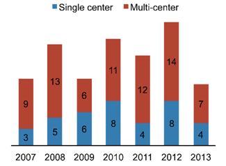 The demographics of the included RCTs highlighted several important issues. First, we observed a steady increase in the number of published RCTs, most of which were conducted in the US and European countries. The majority of the RCTs was performed to test maintenance therapies and was multi-center trials. The RCTs were predominantly published in two journals, Transplantation and the American Journal of Kidney Transplantation. A considerable increase in the number of authors involved in the RCTs was also evident, a trend that may continue. It was also important to compare each item of the guideline individually and to observe the differences and lapses in the reporting of RCTs. This comparison provided crucial information about the standards of reporting. Considerable differences in the reporting of several items were detected, which included items 6b, 10, 11a, 23 and 24, whereas the remainder of the items was comparable. As a result of these differences between items, a significant difference was demonstrated between the CONSORT scores of the two study periods.