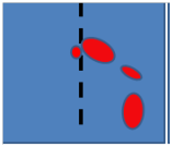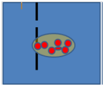 The needle will create disruption in this stratified complex and on the wall of the AVF. As long as the needle is in place the frangible joint is materially filled by the needle itself and does not bleed. During the removal of the needle, chaotic forces begins in the virtual needle tunnel that cannot be filled without obtaining a clot which needs to be in place from the venous wall to the skin. Clinical experience reported by Dr M CHAWKI the inventor of Mozaïk allows comprehensive assessment of different situations of post dialysis puncture sites delayed bleeding. In the next figures dotted lines represents Mozaik microperforated device, red cells and plasma surrounding blood cells (Figure 8).