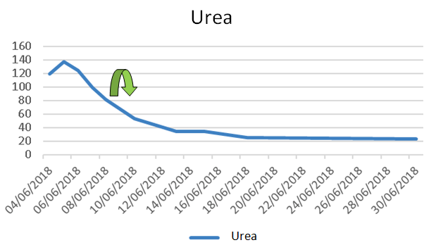 Previously healthy patient (HAF), 4 months old, admitted to the Pediatric Nephrology Unit on 03/02/2016, with maternal report of mucous skin paleness, associated with prostration with evolution of one week. Initial pediatric evaluation showed severe anemia (Hb: 4.5mg/dL), and thrombocytopenia. The child's mother denied the occurrence of fever, bleeding, vomiting, diarrhea, use of medication or other symptoms. On admission, he received red blood cells and the tests performed showed worsening of renal function, hyperuricemia and elevated lactic dehydrogenase (HDL). That time, the intravenous hydration and allopurinol has been started. On 03/06/16 a myelogram was performed which excluded hematological neoplastic disease (marked erythrocytic series hyperplasia and presence of deitropoiesis. Absence of cells foreign to the bone marrow. He evolved with elevated blood pressure levels, progressive worsening of renal function and thrombocytopenia in addition to worsening of anemia, use of Nifedipine and Furosemide was started on 03/17/2016, evaluated by the nephrology team and indicated the beginning of Eculizumab (Day 03/17/16) due to the suspicion of HUS.