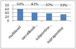 Kyle J. Weld and Roger R. Dmochowski 2000, in his series found that high DLPP present more frequently in patients with sacral & subsacral lesions (85.7%) followed by lesions of multi levels In our series we found that no significant difference between the level of injury and the type of detrusor in urodynamic diagnosis (P value 0.51), in spite of DO was present more frequently in lesions of multilevel (50%) in comparison with suprasacral lesions (43.7%) and sacral lesions (26.6%). We also found acontractile detrusor in sacral & subsacral lesions (51%), suprasacral lesions (37.5%) and multilevel lesions (20%). In a study done by Roger R. Dmochowski 2000, they noted significant correlation between the level of injury and the urodynamic findings (P value 0.01). They found detrusor over activity in (94.9%) of patients with suprasacral lesions while patients with sacral & subsacral (14.3%) and patients with combined lesions (69.7%). They also found acontractile detrusor in (85.7%) of patients with sacral & subsacral injuries while patients with combined lesions (27.3%) and patients with suprasacral lesions (3.1%).